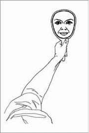 Держи небольшое зеркало на расстоянии вытянутой руки и брось